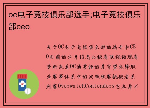 oc电子竞技俱乐部选手;电子竞技俱乐部ceo